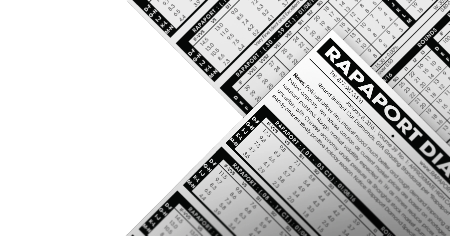 I prezzi si aggiornano in tempo reale in base al listino Rapaport, il punto di riferimento mondiale per la valutazione dei diamanti naturali.